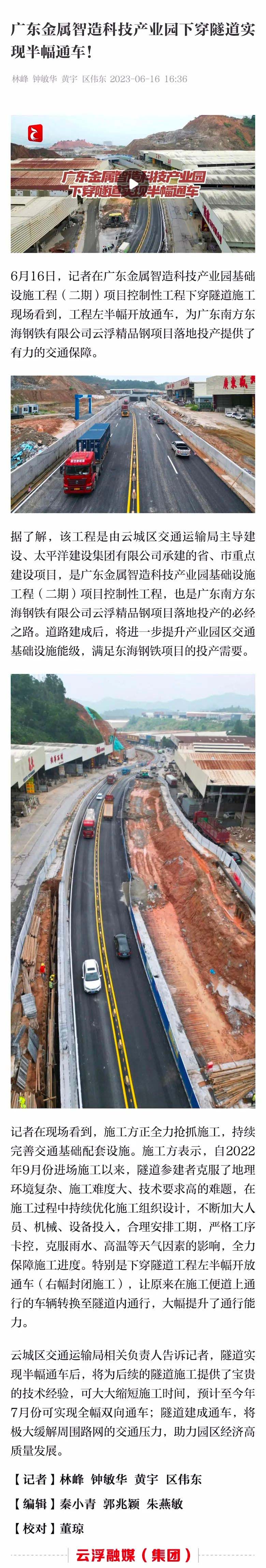 【云浮融媒】广东金属智造科技产业园下穿隧道实现半幅通车!