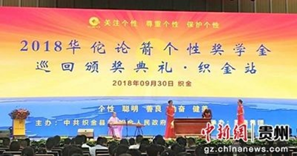 中新网贵州新闻9月30日电 (记者 张伟)“2018华佗论箭个性奖学金巡回颁奖典礼·织金站”活动30日在贵州省织金县举行,织金县100名中小学生获颁华佗论箭个性奖学金。据了解,这是该项奖学金第6次在贵州颁发。