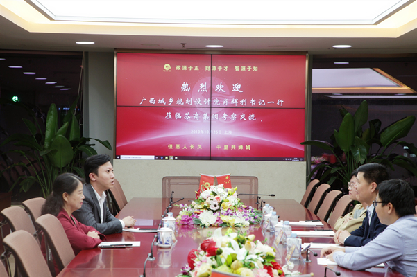 副总裁于节、纪凡在上海总部与广西城乡规划设计院党委书记肖辉利会谈,双方就合作事宜进行深入交流。