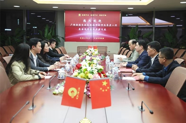 考察的广西贵港市代表团,与副市长韦彦就合作事宜进行深入座谈。
