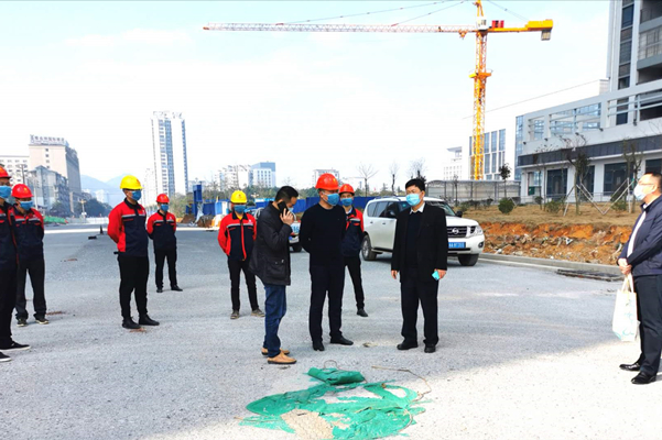 2月24日,广西壮族自治区鹿寨县人民政府副县长黄中视察苏商第八建设集团承建的鹿寨项目,与鹿寨市场负责人王华进行深入交流。