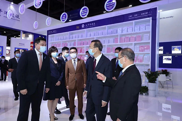 严昊结合展位布置向杨洁篪一行作了详细介绍,严昊表示,太平洋建设以“敬业、精业,向上、向善”的正能量积极进取、不懈奋斗,以“智慧、良心,吃苦、吃亏”的工匠精神致力打造百年老店,始终“用自己的绝对诚信,换取合作方的相对诚信”,与合作方风风雨雨,不离不弃,一路相随。