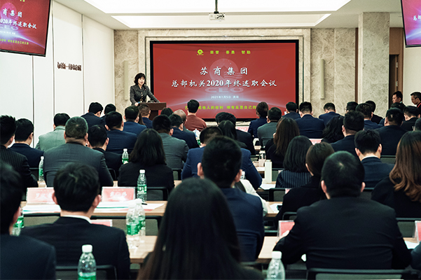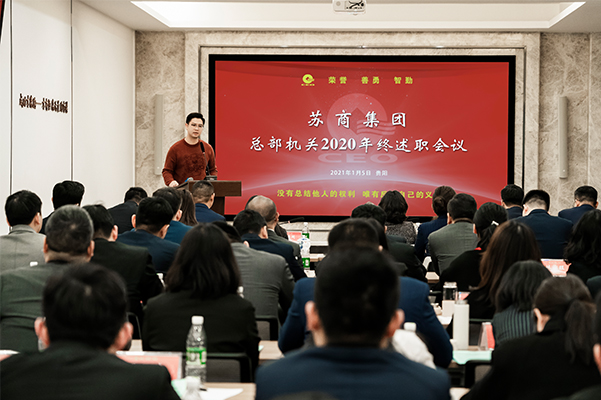 会议首先宣布了苏商系董事局成员、监事会成员、总裁团队及各部门责任人任命决定。机关全体人员以PPT演讲的形式就2020年工作进行述职,对2021年工作计划和个人职业发展规划进行阐述,并积极为总部机关管理和集团发展建言献策。