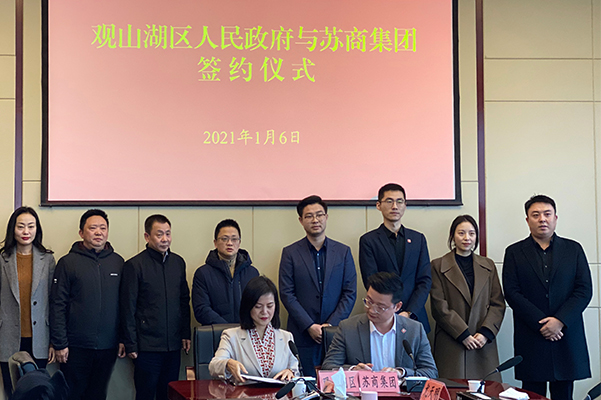 与贵州省贵阳市观山湖区政府签署300亿元战略合作框架协议。苏商系董事局第一副主席、CEO王健闯,观山湖区委副书记、区长罗杨出席签约仪式。苏商系五集团董事局主席张健一、观山湖区副区长吴坤玲代表双方签约。