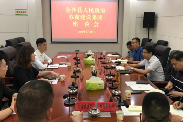 金沙县副县长周劲松,县政府办公室主任刘家荣,县发改局局长熊江屏,县住房和城乡建设局局长谢君,县自然资源局负责人管庆军,县综合行政执法局局长牟杰;苏商建设第十一集团副总裁寇恒磊参加会谈。(文/图 苏商建设第十一集团文品中心)
