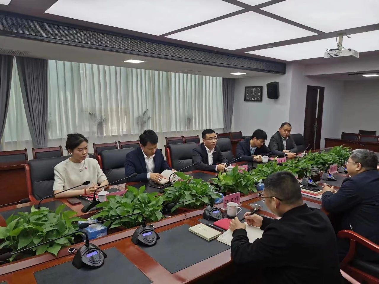 潘磊对刘闯一行的到来表示热烈欢迎,随后详细介绍了贵溪市经济社会发展及产业布局情况。他表示,近年来贵溪市立足新一轮的投资建设与发展,全力以赴发展区域经济,重点项目有序推进,发展空间巨大。希望双方立足各自优势,通过密切沟通联系,架起紧密合作桥梁,推动更多领域的合作落实,共同助力贵溪市经济社会高速发展,实现政企合作共赢。