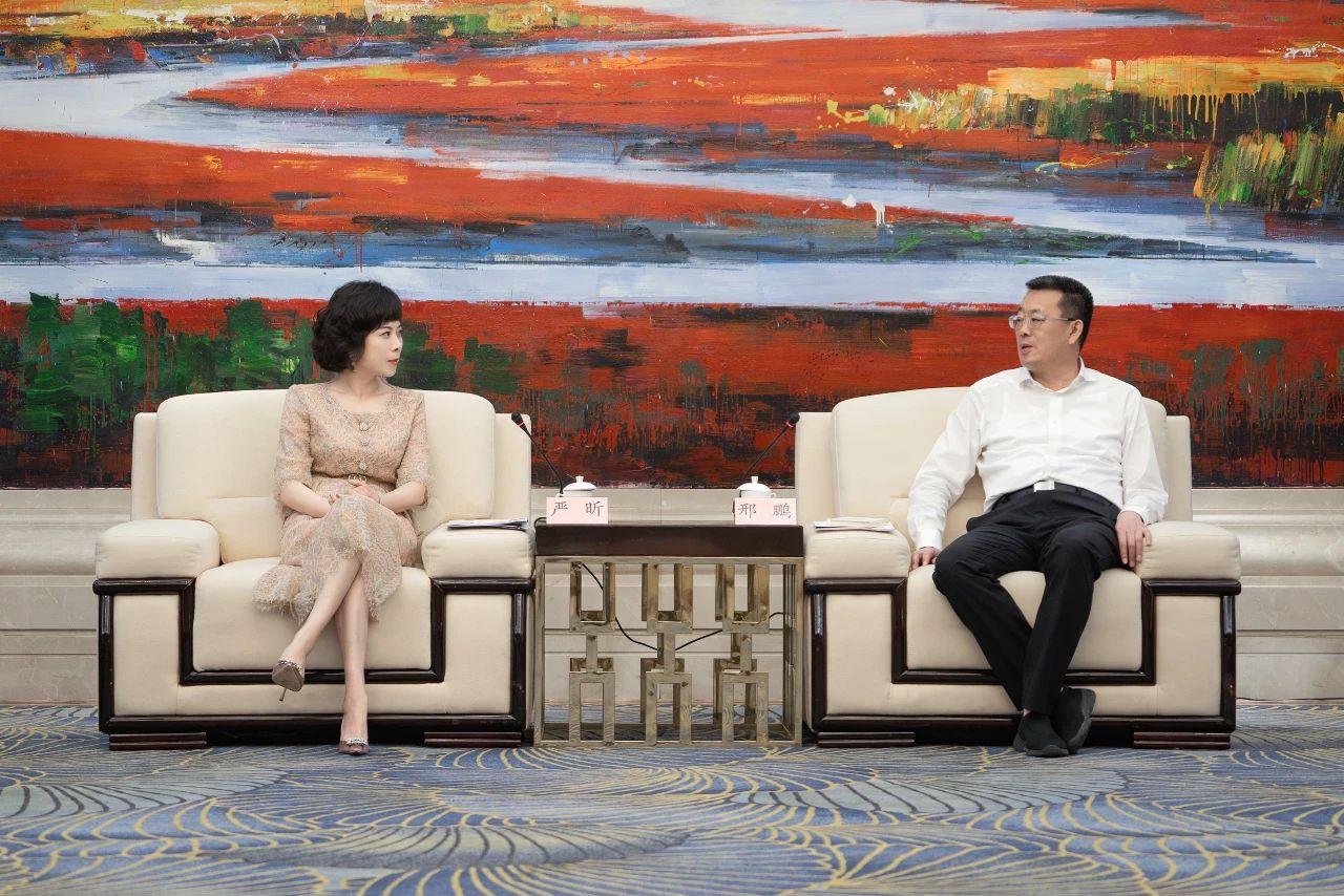 董事局主席严昕在辽宁省盘锦市同市委副书记、市长邢鹏会谈,双方就进一步深化合作展开交流。盘锦市副市长徐同连,市政府秘书长、办公室主任王冰,日本三级片