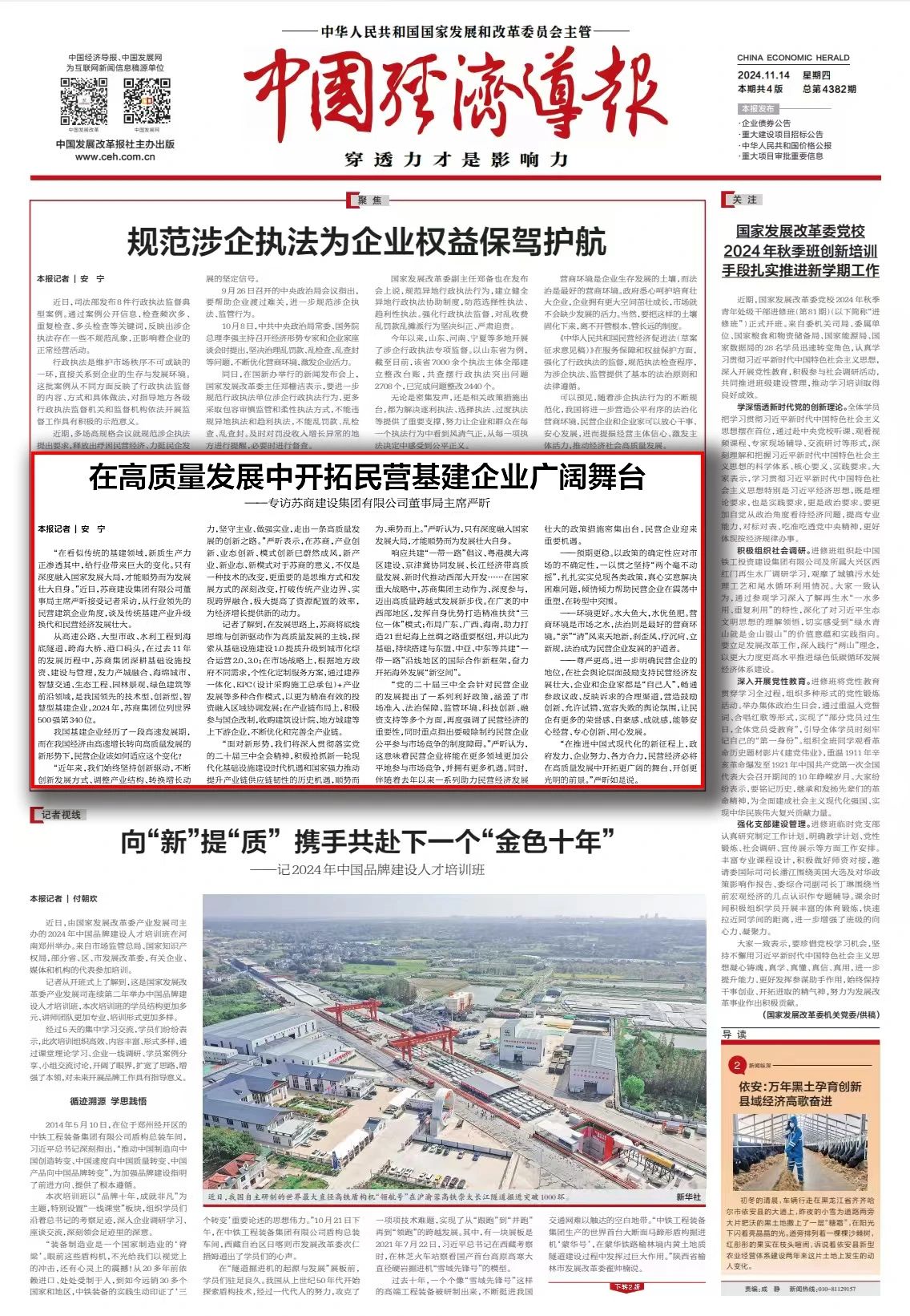 董事局主席严昕受邀参加培训,并在期间就民营经济高质量发展、新质生产力赋能传统行业等话题接受相关媒体专访。