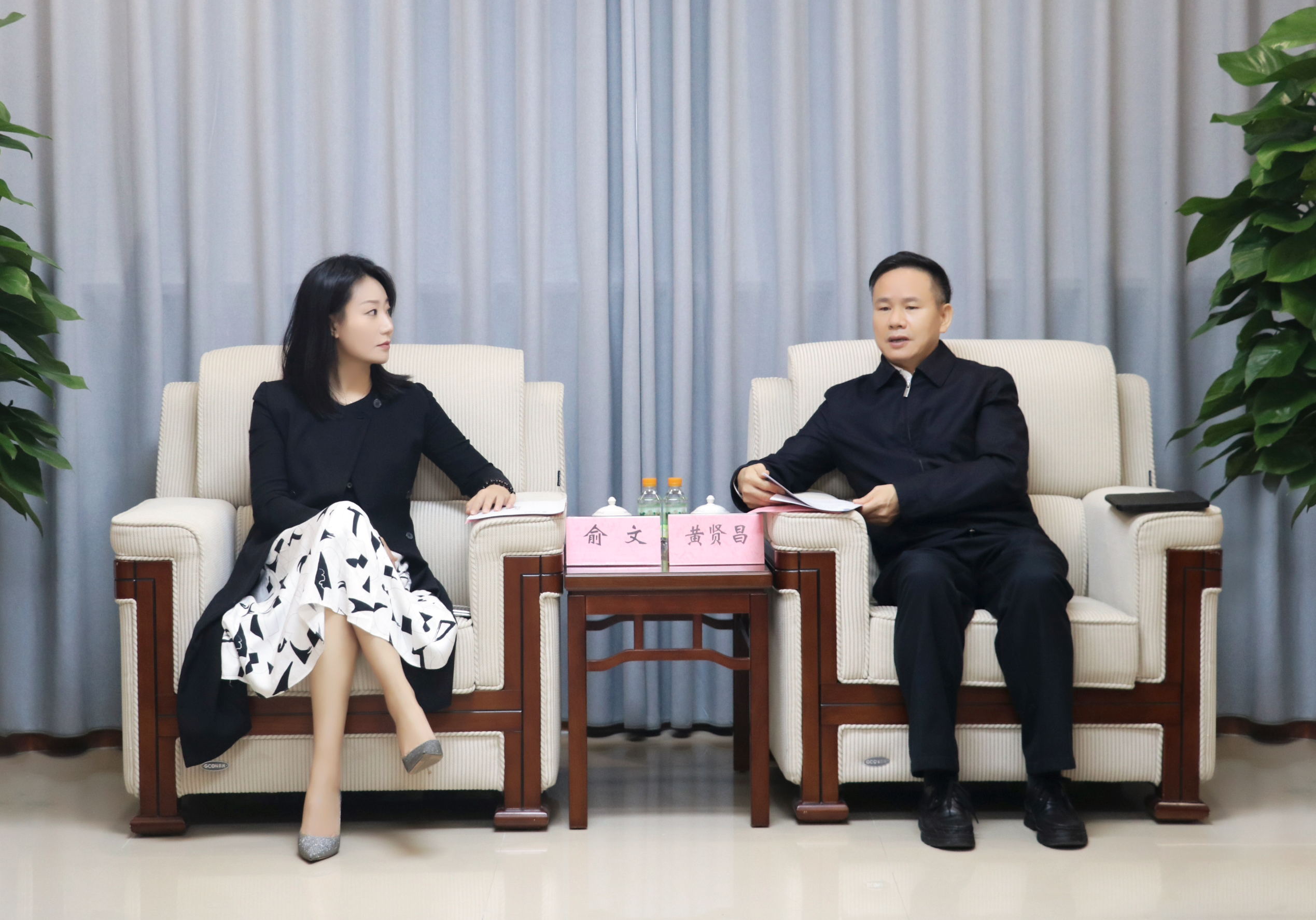 董事、CEO俞文在广西河池市同市委常委、常务副市长黄贤昌会谈,双方就进一步深化合作事宜展开交流。苏商园林董事局主席王强参加会谈。